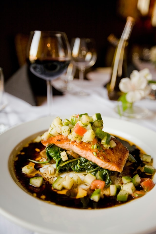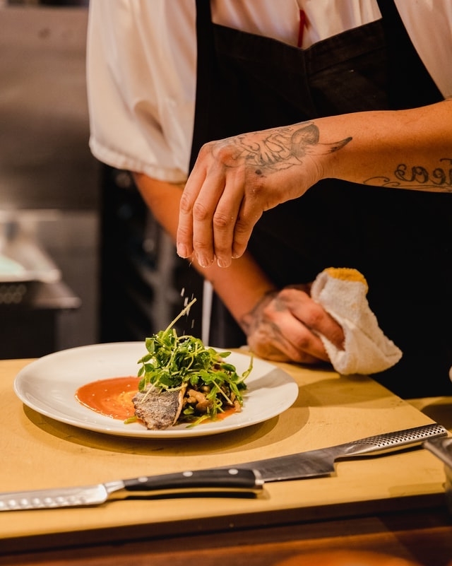 با نمک و فلفل سیاه خرد شده با سس شراب قرمز مالیده شده است.