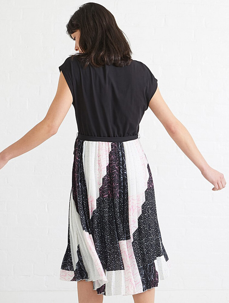 این مدل یک بلوز سفید از مجموعه استایلیست ما پوشیده است، تصویر را برای ماکتی از ظاهر بلوز واقعی مشاهده کنید. روی آن متنی به زبان شکسته مشکی نوشته شده است که در رنگ سفید عالی به نظر می رسد.