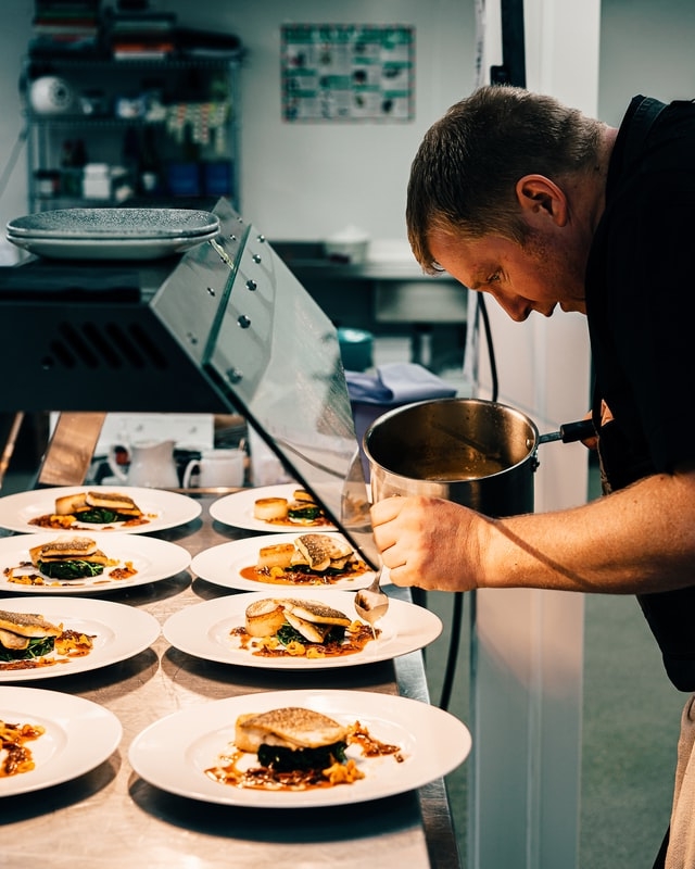 کباب گوشت گوساله آهسته بوداده با سس خامه ترب کوهی سرو می شود